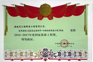 合肥市一環(huán)路綜合暢通工程J標(biāo)--國家優(yōu)質(zhì)工程獎(jiǎng)