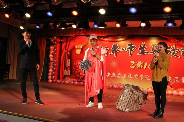12月30日晚,安徽建工技師學院2016年迎新年師生聯歡晚會在學校禮堂隆重舉行。校長張衛東、黨委書記錢森林、安徽建工建筑材料有限公司副總經理徐友修、工會主席韓振遠,安徽建工技師學院副校長任建設、周元清、呂良玉,紀委書記、工會主席龔維加與各處室、系部負責同志和廣大師生員工、部分離退休老同志參加了聯歡。