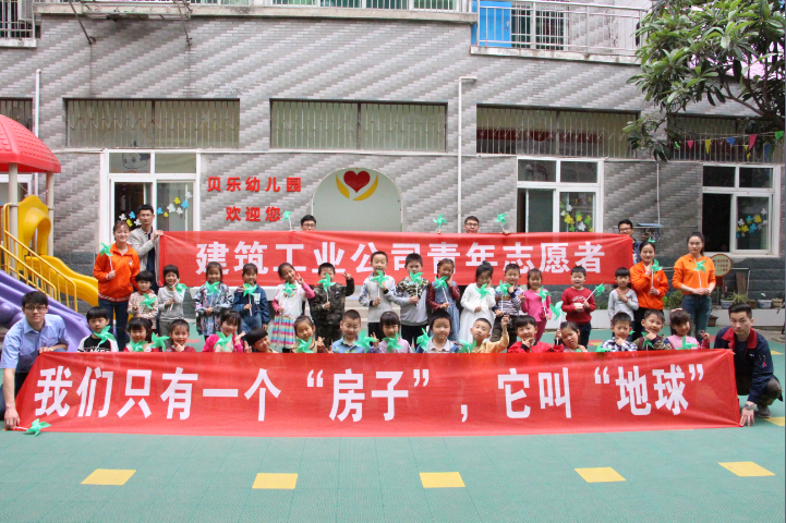 4月25日,建筑工業(yè)公司團(tuán)支部組織青年志愿者來到肥東撮鎮(zhèn)貝樂幼兒園,開展了《我們只有一個(gè)“房子”,它叫“地球”》的環(huán)保主題教育活動(dòng)。