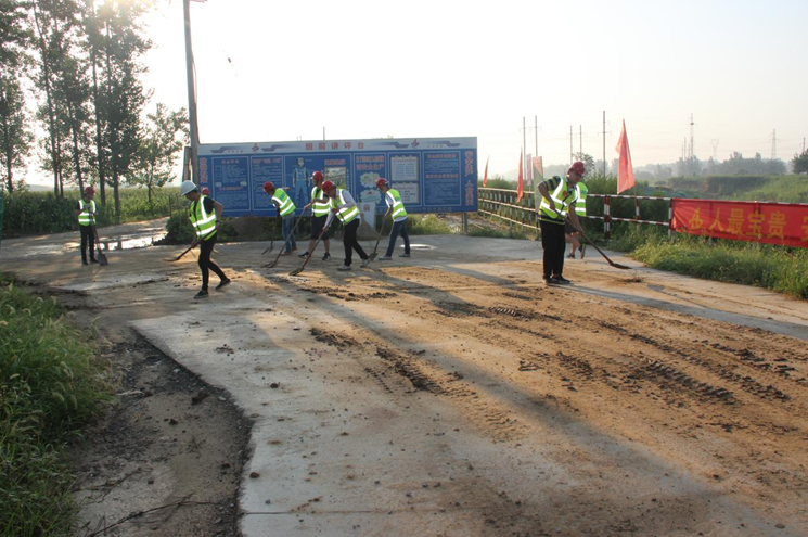 受近日暴雨天氣的影響,安徽路港南坪船閘項目部施工區(qū)域路面泥濘,車輛進(jìn)出極易出現(xiàn)空轉(zhuǎn)、側(cè)滑現(xiàn)象,給車輛正常通行帶來了不便。8月10日清晨,南坪船閘項目團(tuán)支部組織“青安崗”成員對泥濘道路進(jìn)行集中清掃,小伙子們佩戴“青安崗”徽章,不怕臟,不怕累,有的用鐵鍬鏟除泥巴,有的用掃帚清掃路面,大家熱情高漲,以勞動為榮,樂在其中。