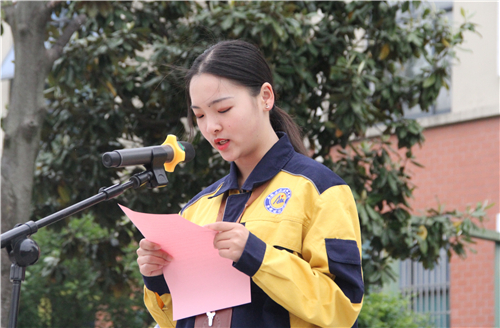來自城市管理系陳娋君同學代表全體學生在國旗下演講,她以“五四”精神,唱響青春之歌;苦練專業技能,報效祖國母親”為主題,號召同學們要時刻注重自身日常文明行為習慣的養成,展示建工學子蓬勃的精神風貌;在學習上,要努力上進,苦練技能,勇于拼搏,彰顯建工學子的豪情壯志。