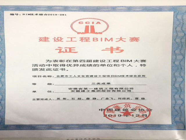 BIM大賽獲獎證書