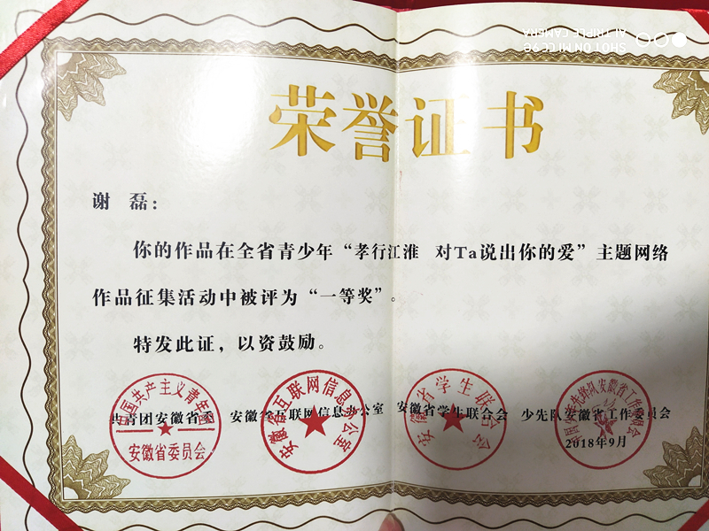 2018年團(tuán)省委“孝行天下 對ta說出你的愛”主題網(wǎng)絡(luò)作品征集活動一等獎