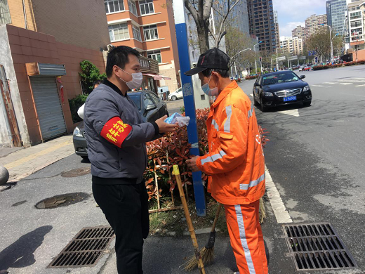 參加分公司“給環衛工人贈送防疫愛心包”志愿活動