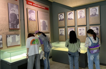 大家來到陳列館,館內陳列著有代表性的從第一、第二次國內革命戰爭時期至社會主義建設時期烈士的光輝業績。接著,到紀念碑前,全體團員青年莊嚴宣誓,重溫入團誓詞。