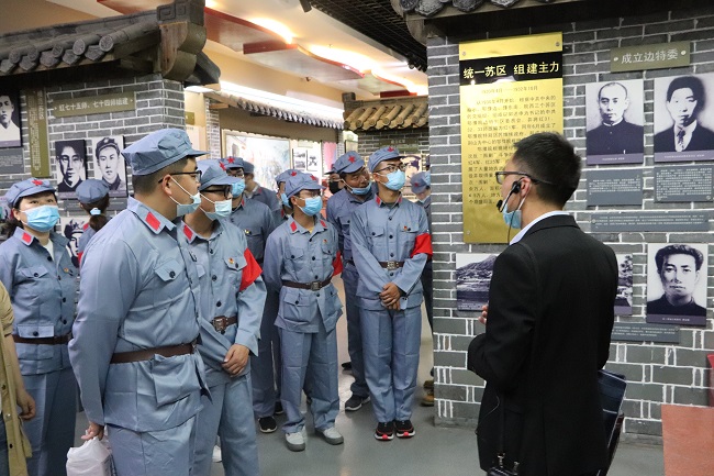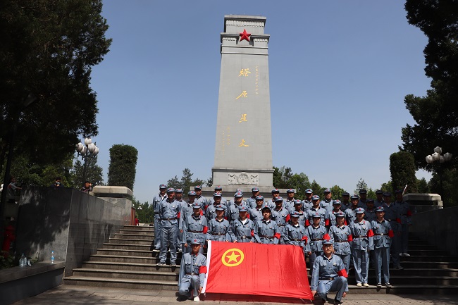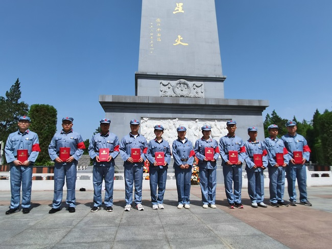 在統(tǒng)一換上紅軍服裝后,青年團員們首先來到金寨紅軍文化廣場。在革命烈士紀念塔下,面對鮮艷的中國共產(chǎn)主義青年團團旗,公司團委書記帶領到場青年團員重溫入團誓詞,牢記初心使命,緬懷革命先烈,傳承五四精神,并對榮獲公司2020年度“五四紅旗團支部”與“優(yōu)秀團員”的集體與個人進行了表彰。