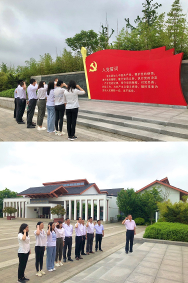 隨后,大家沿著紅色足跡來到了沈浩同志先進事跡陳列館,現場認真聆聽了沈浩同志的先進事跡,在他擔任村領導的六年中,他深入群眾、拉近距離、調研走訪、摸清村情,用心融入到小崗村。在為小崗村脫貧致富忙碌奔波中,三過家門而不入,吸引大學生進村創(chuàng)業(yè)、招商引資辦工業(yè)、開發(fā)旅游促三產等一系列措施,使得小崗村村民生活水平顯著提高,文化生活豐富多彩,精神面貌煥然一新。在學習沈浩同志先進事跡時,大家無不為沈浩扎根小崗、克己奉公、干事創(chuàng)業(yè)的崇高品質所感動,更加明白了為什么他能成為小崗村鄉(xiāng)親們三次按下紅手印留下的好干部、人民好公仆。在陳列館門前,黨員面對鮮紅的黨旗,重溫入黨誓詞,莊嚴宣誓。
