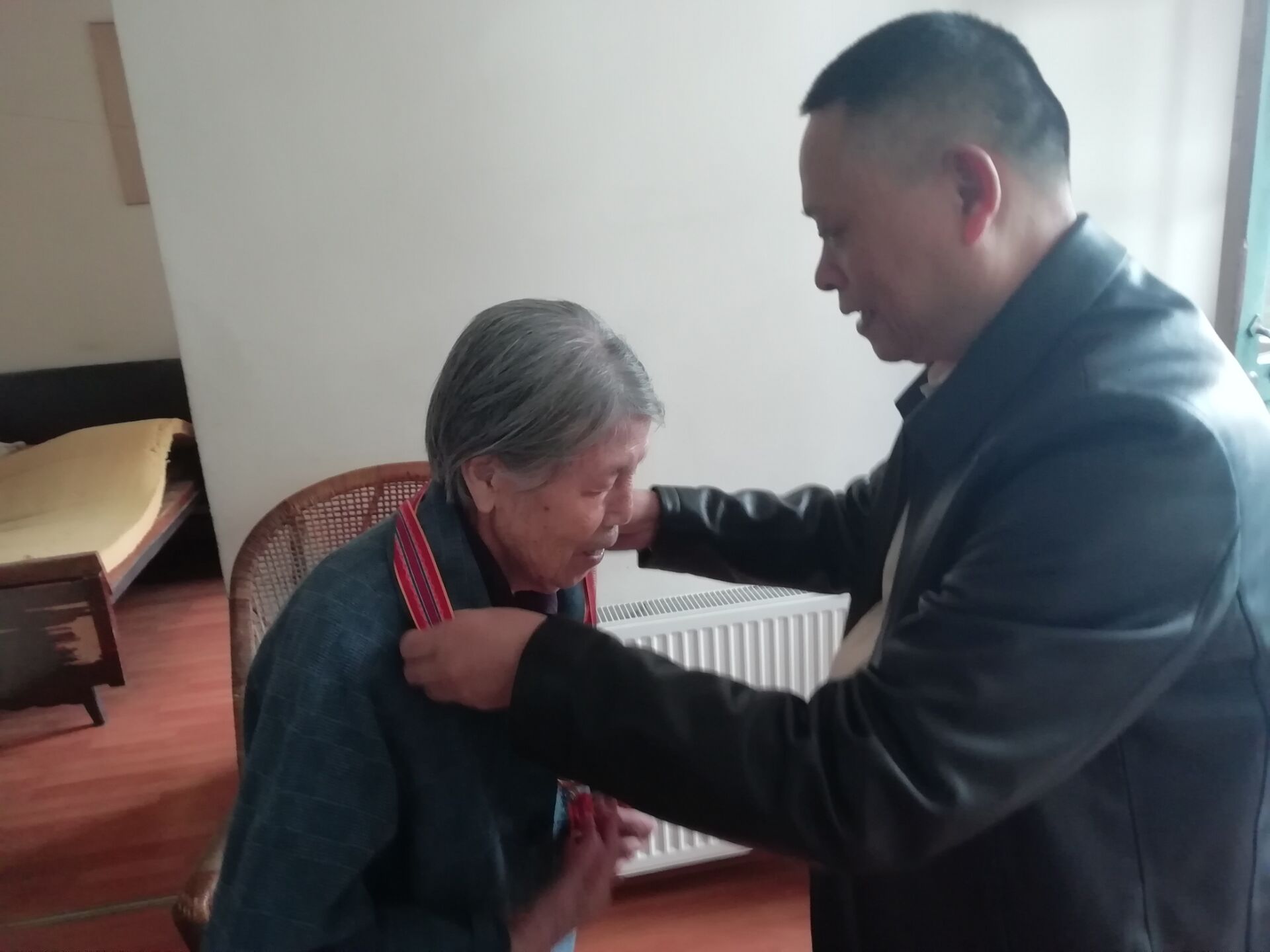近日,集團機關黨委書記、離退休辦主任李世龍登門看望慰問了抗美援朝老戰士李素云老人,并送上中央今年統一向抗美援朝老戰士頒發的“中國人民志愿軍抗美援朝出國作戰70周年”紀念章。