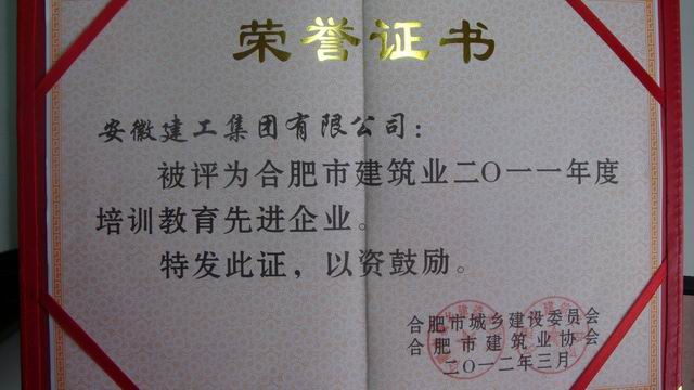 近日,在合肥市建委召開的2012年建筑業工作會議上,安徽建工集團榮獲“合肥市建筑業二0一一年度培訓教育先進企業”榮譽稱號。