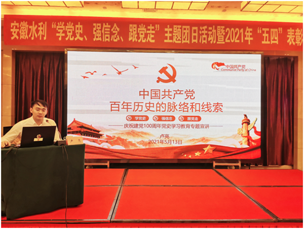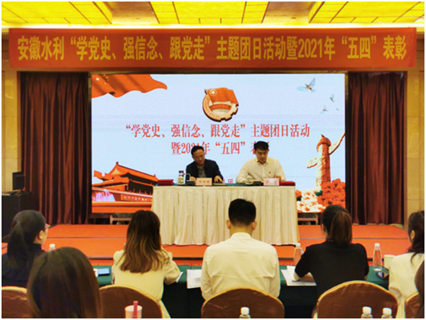 為慶祝中國共產黨成立100周年、五四運動102周年,傳承五四精神,賡續紅色血脈,激發青春力量,激勵廣大團員青年投身公司“十四五”高質量發展,進一步推深做實公司共青團系統黨史學習教育,2021年5月13日下午,安徽水利團委在安徽水利和順大酒店(合肥店)舉辦“學黨史 強信念 跟黨走”主題團日活動暨五四表彰會。安徽水利黨委委員、紀委書記鄭桂林出席活動并講話。所屬各團組織負責人、“一紅兩優”受表彰人員、青年代表共50余人參加會議。