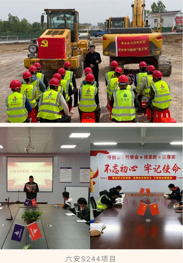 共學(xué)黨史悟初心,凝聚共識知奮進(jìn)!今年是中國共產(chǎn)黨成立100周年,隨著黨員群眾學(xué)黨史氛圍越發(fā)濃烈,學(xué)習(xí)熱情越發(fā)高漲,安徽路橋集團(tuán)五分公司黨支部細(xì)心策劃,開展黨史學(xué)習(xí)教育,并于近日開展黨史學(xué)習(xí)教育“進(jìn)工地”活動。