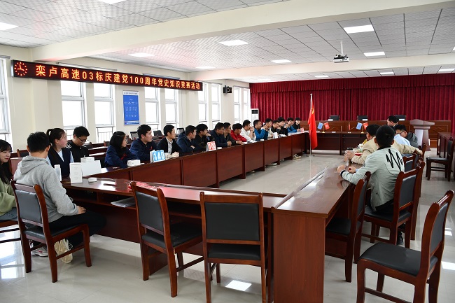 學(xué)習(xí)百年黨史,汲取奮進(jìn)力量。4月29日下午,安徽路橋集團(tuán)欒盧高速03標(biāo)為慶祝中國共產(chǎn)黨成立100周年,扎實(shí)開展黨史學(xué)習(xí)教育,項(xiàng)目黨支部聯(lián)合項(xiàng)目工會(huì)舉辦了黨史知識(shí)競賽,并邀請項(xiàng)目公司、駐地辦等單位參加。旨在通過競賽推動(dòng)黨史學(xué)習(xí)教育深入群眾、深入基層、深入人心,真正做到學(xué)黨史、悟思想、辦實(shí)事、開新局。