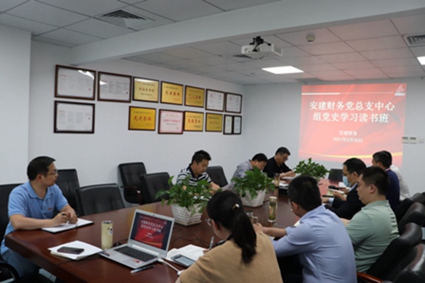 5月26日,安建財務舉辦黨總支中心組黨史學習教育讀書班,開展黨史讀書學習與交流研討。會議由黨總支副書記、總經理于忠山主持,公司各部門負責人、所屬各黨支部委員參加會議。