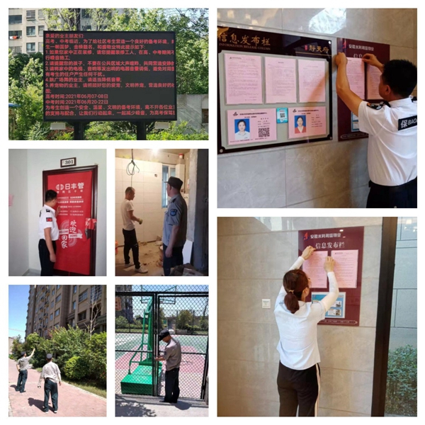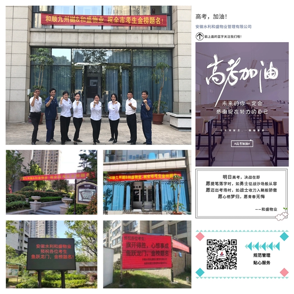 為給考生營造安靜舒適的備考環境,和盛物業組織開展“助力高考、為夢護航”暖心服務活動,以實際行動助力高考。一是無聲陪伴。考試前一周,倡導小區全體業主“出行靜音”“運動靜音”“居家靜音”,盡可能避免裝修施工,關閉戶外運動場所。二是清涼助考包。將清涼油、風油精、Cooling貼等防暑降溫物品送入考生家中、送進考生心里,為高考增添一份力量、為征程送去一份清涼。三是最強啦啦隊。通過橫幅、電子屏、微信公眾號等為考生加油鼓勁。