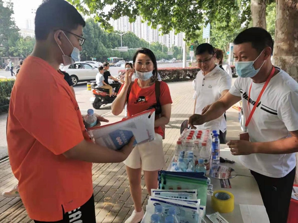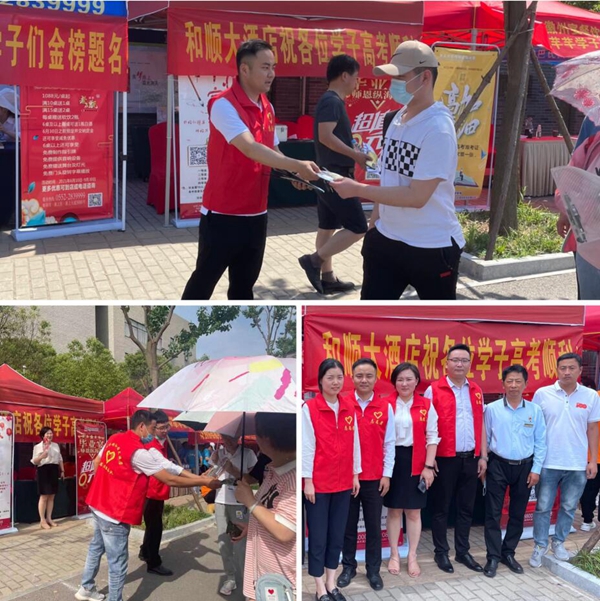和順地產所屬各單位積極組織志愿者一早在各地高考考點外設置“高考愛心服務站”,開展愛心助力高考志愿者活動。志愿者們除了為考生及家長發送扇子、礦泉水、口罩等愛心物資,也為奔波在考點周圍一線的交警和公安干警們送去清涼。