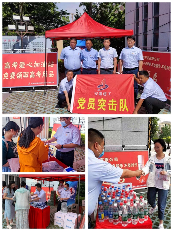 一公司黨總支開展“助力高考,為夢護航”黨員志愿服務活動,組成志愿服務隊,分別在界首、合肥、固鎮等地開展愛心助考服務。為考生們助力加油,為服務高考的交警、考生家長送清涼,為本單位高考的職工子女送上一份祝福。
