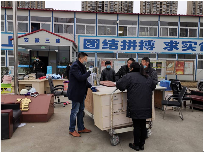 1月25日大年初一中午11:30,合肥市二院老年護理院項目留守經理高瑞凱接市二院黨委電話,要求應急征用項目辦公區,盡快將項目辦公區整體移交合肥市二院做為新型肺炎疫情發熱門診及留觀病房。接到消息分公司立即向公司黨委做了匯報。安徽三建公司黨委當即要求項目部堅決服從合肥市疫情防治工作需要,馬上組織人員進行搬遷,迅速配合合肥市二院做好項目部辦公區功能切換工作。公司黨委委員、紀委書記、工會主席李家保趕到到現場調度、指揮。
