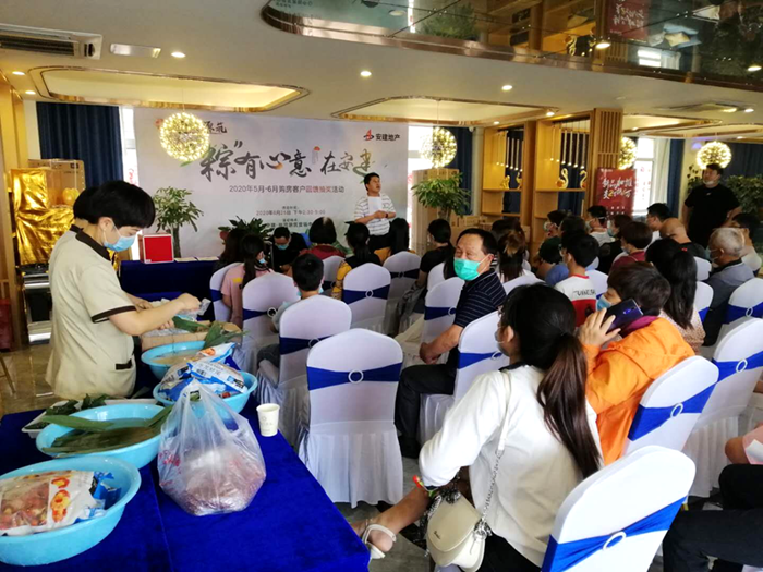 2020年6月,安建地產·尚河源筑項目以端午節(jié)回饋抽獎活動為節(jié)點,圍繞兒童節(jié)、6.18購房節(jié)、父親節(jié)、端午節(jié),展開客戶增量來訪邀約,老客戶維護活動。為了更好的配合營銷工作抓業(yè)績、提效益,青年突擊隊上下聯(lián)動,組建拓客小組,搶抓時間,開展拓客助力營銷活動。兒童節(jié)、父親節(jié)以線上小游戲設計通過游戲禮品吸引增量客戶到訪,線下通過異業(yè)聯(lián)盟與固鎮(zhèn)3所幼兒園達成合作,邀約孩子與家長到達營銷中心參與親子游戲。端午節(jié),營銷部組織了對認購簽約客戶開展了端午粽子DIY、抽家電活動,通過系列主題購房節(jié)活動既增加了客戶信任感,提升了項目品牌知名度。