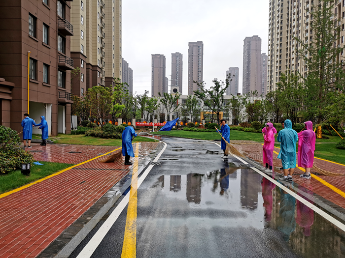 公司黨員和入黨積極分子志愿者們冒雨前往即將交付的楓林源筑小區開展大掃除。大家仔細清理小區道路以及綠地里的垃圾、樹枝,以實際行動弘揚志愿服務精神,美化了小區環境,提升了業主入住的幸福指數。
