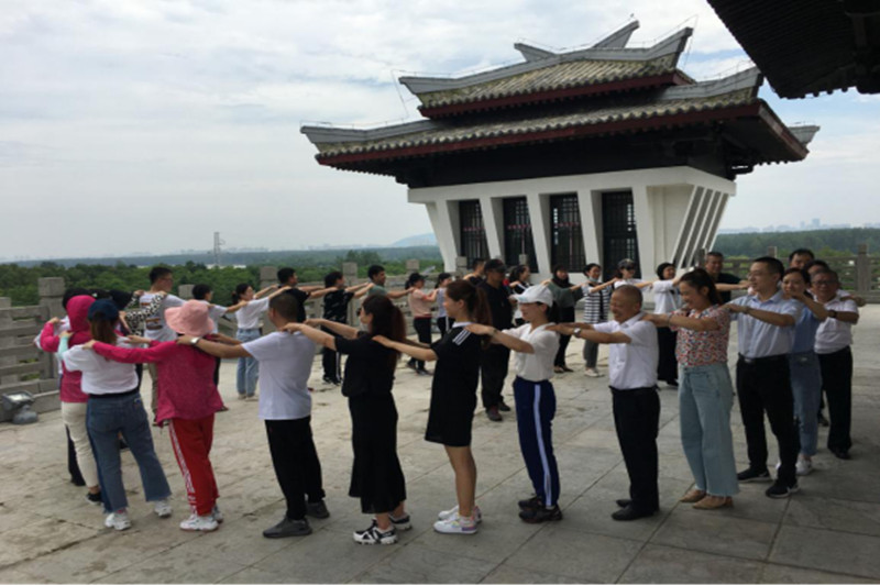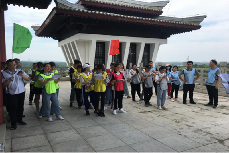 學(xué)習(xí)活動結(jié)束后,大家稍作休息,來到“金湯虎臺”,站在“城樓”之上,俯瞰遠(yuǎn)方,想象著當(dāng)年的滿寵將軍戰(zhàn)鼓陣陣、兵馬如林的場景,大家心中不禁升起一股濃郁豪情。緊接著,在拓展教練的引領(lǐng)下,全體人員進(jìn)行了簡短而富有趣味的熱身活動和小游戲,身心得到了完全的舒展。隨后大家被分成兩隊,通過發(fā)揮團(tuán)隊合力分別制作了隊旗、隊徽,精彩展示了口號和隊形,協(xié)作完成了漢諾塔團(tuán)隊任務(wù),在活動中增進(jìn)了情感交流,提升了團(tuán)隊凝聚力戰(zhàn)斗力。最后,機(jī)關(guān)黨支部還精心組織開展了黨建知識快問快答比賽,這是一場智慧和腦力的比拼,更是一次加強(qiáng)政治學(xué)習(xí)、鞏固黨建知識的大好機(jī)會,6個小組奮勇爭先,現(xiàn)場氣氛十分熱烈,通過6輪緊張激烈的競答環(huán)節(jié)最終決勝出團(tuán)體第一、二、三名,充分展現(xiàn)了安徽建科機(jī)關(guān)黨支部黨員深厚的政治理論功底和斗志昂揚(yáng)的精神狀態(tài)。