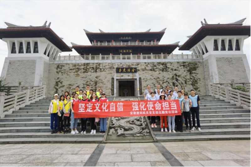 為大力弘揚(yáng)中華傳統(tǒng)文化,增強(qiáng)文化自信,進(jìn)一步提高支部黨員的綜合素質(zhì)和團(tuán)隊?wèi)?zhàn)斗力,7月22日,安徽建科機(jī)關(guān)黨支部組織黨員、發(fā)展對象、入黨積極分子共計37人赴合肥市愛國主義教育基地三國遺址公園開展“堅定文化自信、強(qiáng)化使命擔(dān)當(dāng)”主題黨日暨團(tuán)隊建設(shè)活動。安徽建科領(lǐng)導(dǎo)項(xiàng)炳泉、安東兵、李躍進(jìn)、程鋼及民主黨派代表侯駿應(yīng)邀參加活動。