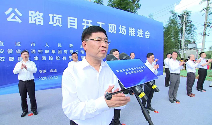 省政府副秘書長汪春明、省發改委一級巡視員王啟康、省交通運輸廳廳長章義、省交通運輸廳總工程師章后忠,宣城市委書記陶方啟、市長孔曉宏以及牛傳勇、郭金友等市領導出席。安徽交控集團董事長項小龍、總經理錢東升,安徽建工集團董事長趙時運、總經理劉家靜等人參會。