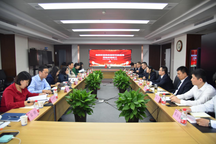 10月13日下午,商務(wù)部國際貿(mào)易經(jīng)濟(jì)合作研究院副院長張威一行蒞臨安徽建工,開展“走出去”專題調(diào)研。建工股份副總經(jīng)理、海外事業(yè)部黨總支書記、總經(jīng)理邢應(yīng)梅主持交流座談。