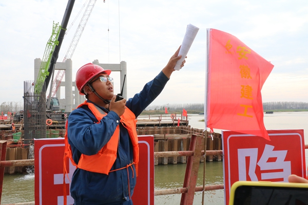 固蚌、蕪黃高速作為省委省政府規劃的“縣縣通高速”,將在2021年建成通車,這對于今年3月份項目才正式開工的全體建設者來說,無疑是個巨大挑戰。在淮河岸邊、澮河之上,青年黨員陸志康正在組織打樁機施工。“澮河特大橋長2.6km,是安徽省首座組合梁系桿拱橋,引橋采用鋼板組合梁,建成后將成為澮河上的新地標,”他自信地說。不論是疫情防控后的復工復產,還是抗洪期間,他都始終沖鋒在前,白天在一線蹲守,晚上研究解決問題的辦法。圓月初升,各個工位上的聚光燈,點燃寂靜夜空,將夜晚照得如同白晝明亮,陸志康乘著夜色仍在混凝土澆筑工點,忘記了時間,只為了一個目標,就是要把項目又好又快建成。
