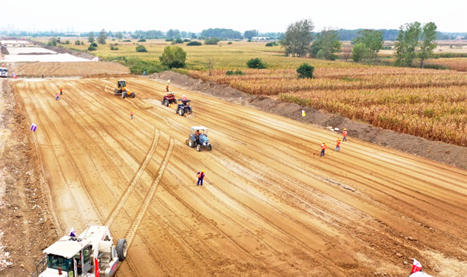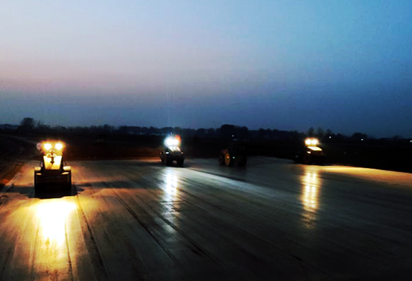 G329利辛繞城段新建工程項目計劃工期18個月,面對施工工期緊、協調關系復雜、施工組織難度大等問題,項目部領導班子迅速調整,采用項目部協調例會和現場生產例會相互結合的創新模式,合理分配各工區人員隊伍及機械設備,通過建立健全各項規章制度,不斷強化內部管理。根據項目需要,充分推廣應用“四新”科技成果,采用新型化學泥漿護壁、混凝土裂縫控制、預應力技術、高性能混凝土等技術措施,為項目生產提供保障。與此同時,沿線增設鋼筋加工場,解決鋼筋籠制作和運輸問題;河道內建立擋水圍堰并采用埋設深護筒的方法,保障橋梁樁基的順利成孔;路基施工、承臺開挖、混凝土澆筑等層面,多單位相互協作,多工序交叉作業,以科學的管理保證年度目標的順利實現。10月29日,K0+000-K2+600標段日進土量約5000方,近20臺機械同時作業,技術人員工區內來回穿梭,忙的不亦樂乎。掌握了工程施工特點和創新技術的G329項目員工,逐個攻克遇到的各種難題,不斷掀起促生產、促超產的施工浪潮。