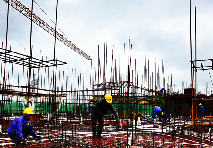 湛江力高項目冒雨綁扎鋼筋,搶工正當時