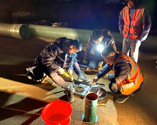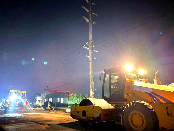 由于該項目施工區(qū)域位于交通干道,車輛、人員流動量大,道路兩旁住房、廠房密布,大規(guī)模作業(yè)無法實施。針對種種困難和壓力,項目部精心謀劃,組織精干力量,分重點、分區(qū)域、分節(jié)點,采用“插縫施工”思路,以點帶面,以面促片,順利完成路床交驗、路面水穩(wěn)試驗段鋪筑、污水管道施工和全線舊路面板破除等節(jié)點任務。