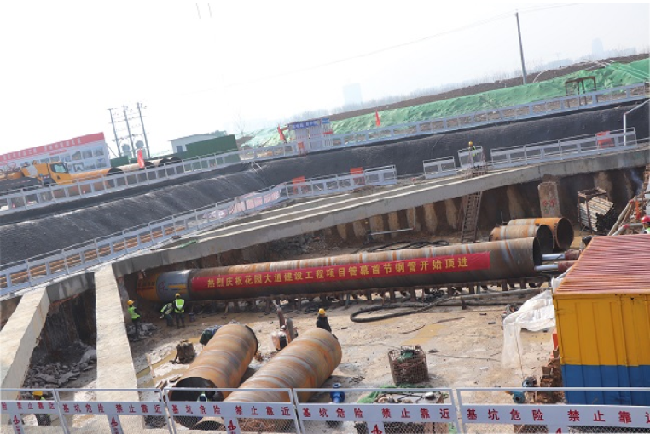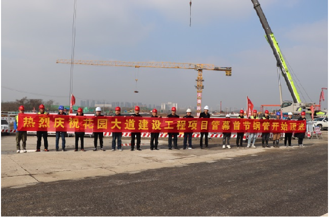 3月2日9時18分,安徽路橋集團花園大道(徽州大道-包河大道)建設工程隧道管幕首節鋼管開始頂進。
