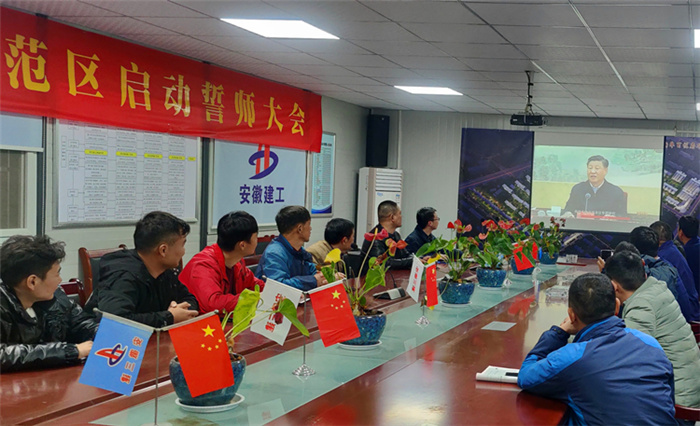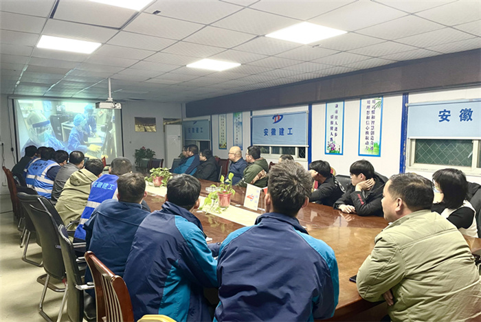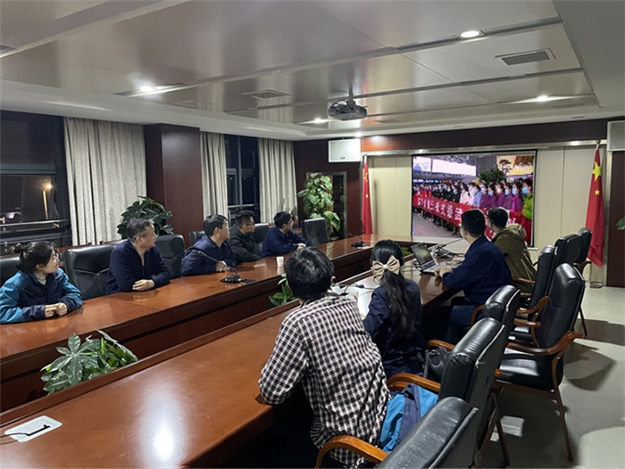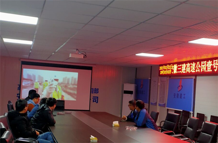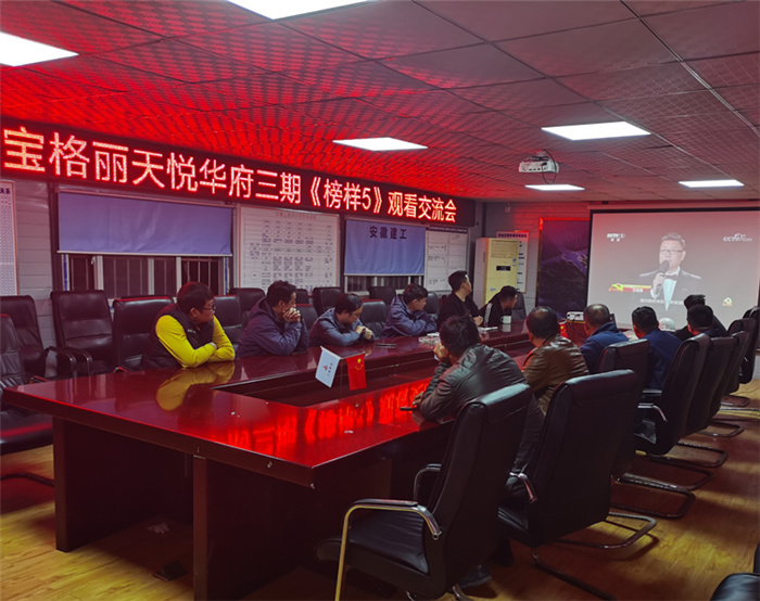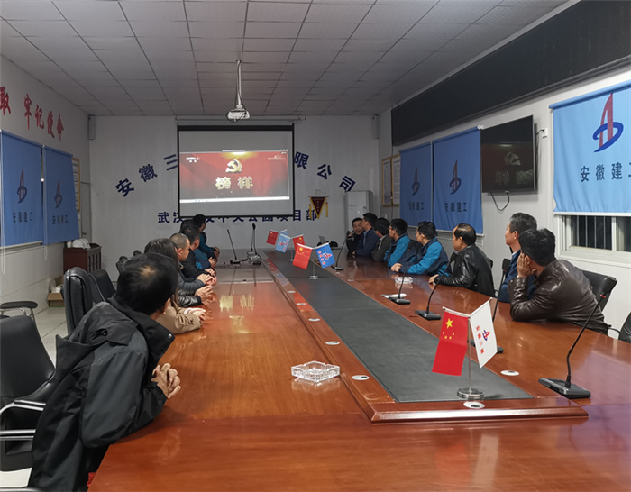 在六安第一中學擴建項目會議室,當天晚上參與項目建設的四公司、安裝公司、門窗公司聯(lián)合組織項目黨員及管理人員集中觀看專題片。次日一早,裝飾也組織六安一中項目參戰(zhàn)管理人員集中收看專題片,汲取榜樣力量。