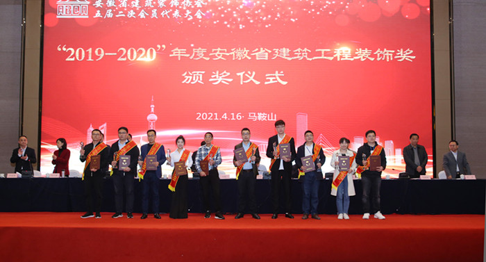4月16日,安徽省建筑裝飾協會五屆二次會員代表大會在馬鞍山舉行。會上對“2019-2020年度安徽省建筑工程裝飾獎”進行了隆重頒獎。安徽三建公司憑借精湛的工程質量榮獲3項“安徽省建筑工程裝飾獎”,并獲“對新冠疫情作出奉獻單位”表彰。