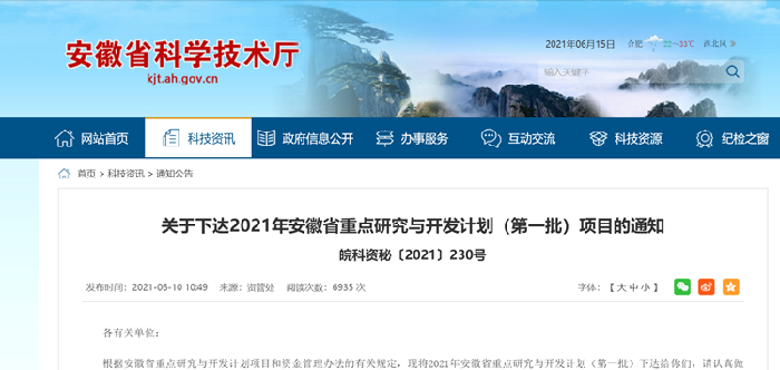 2021年安徽省重點研究與開發計劃(第一批)共立項項目354項,其中攻關類項目136項。安徽省重點研究與開發計劃的主要任務是:突出需求和應用導向,聚焦產業發展和民生改善,支持產業技術攻關和應用基礎研究,支持先進技術成果推廣應用示范,為我省經濟高質量發展和社會進步提供科技支撐。該計劃由省科技廳是計劃組織實施,省重點研究與開發計劃項目可按規定獲得配套資金支持。