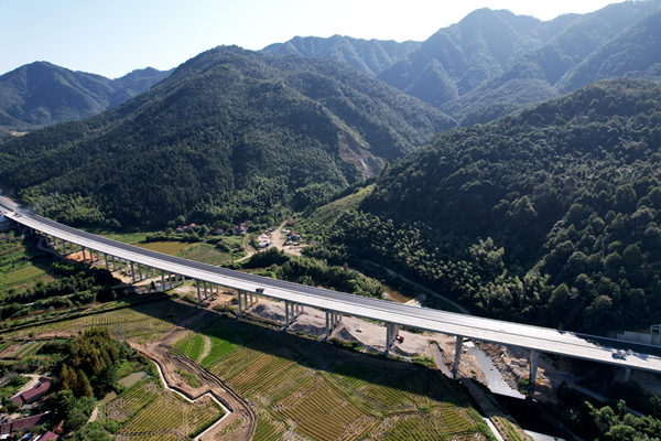 進入9月,位于皖南山區的安徽路橋道路分公司宣涇高速涇縣樞紐互通項目施工現場,呈現出白天一片熱火朝天、夜晚依然燈火通明的大干景象。遠遠望去,只見立體式的互通環環相扣,一排排高低整齊的滿堂支架沿著山谷向四方輻射,在青山映襯之下,頗為壯觀。