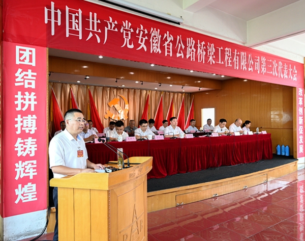 孫學軍代表建工控股黨委向大會的勝利召開表示祝賀,向全體與會代表以及奮戰(zhàn)在各條戰(zhàn)線上的全體黨員干部職工致以親切問候。他指出,過去的五年,安徽路橋黨委堅持以習近平新時代中國特色社會主義思想為指導,全面落實從嚴治黨要求,認真貫徹落實習近平總書記在國有企業(yè)黨建工作會議上的重要講話精神,在建工控股黨委的堅強領導下,團結(jié)帶領全體黨員干部職工,始終保持奮斗姿態(tài)、戰(zhàn)斗狀態(tài),全力搶抓發(fā)展機遇,有效應對風險挑戰(zhàn),準確定位發(fā)展方向,解放思想、把握大勢,積極拓展新市場、培育新業(yè)態(tài)、重組新架構(gòu)、建立新機制,加快打造品質(zhì)路橋、卓越路橋,整體規(guī)模增長迅速、轉(zhuǎn)型升級成效顯著、企業(yè)核心競爭力不斷增強、國企擔當有力彰顯、黨的建設全面加強,實現(xiàn)了“十三五”圓滿收官、“十四五”高位起步,為集團整體上市及改革發(fā)展作出了積極貢獻。就開好此次黨代會和推動安徽路橋?qū)崿F(xiàn)更好更快發(fā)展,孫學軍強調(diào),要勇于擔當積極作為,奮力推動公司持續(xù)高質(zhì)量發(fā)展;要弘揚偉大建黨精神,縱深推進全面從嚴治黨;要嚴守政治紀律和政治規(guī)矩,確保大會取得圓滿成功。