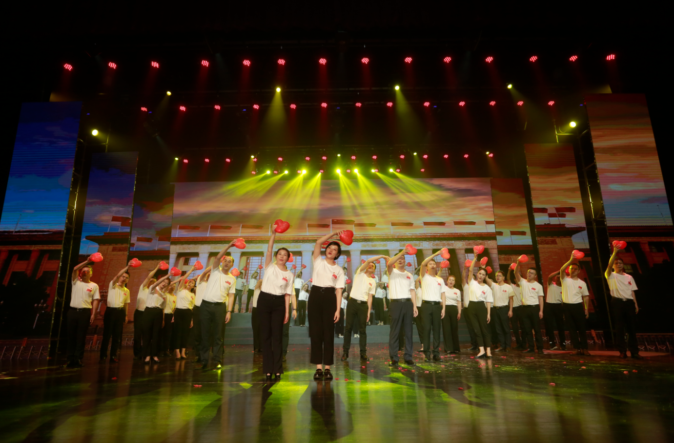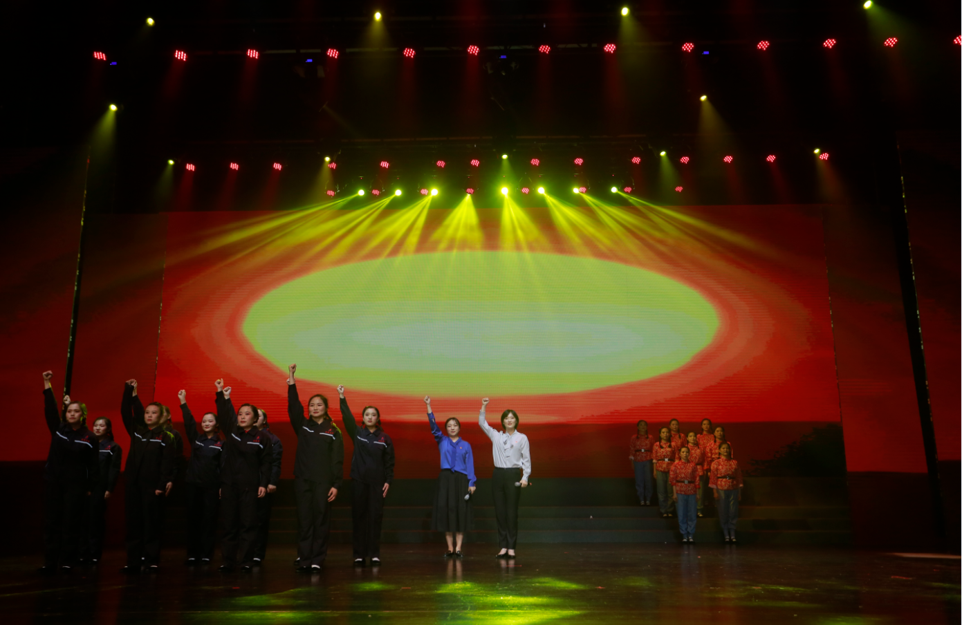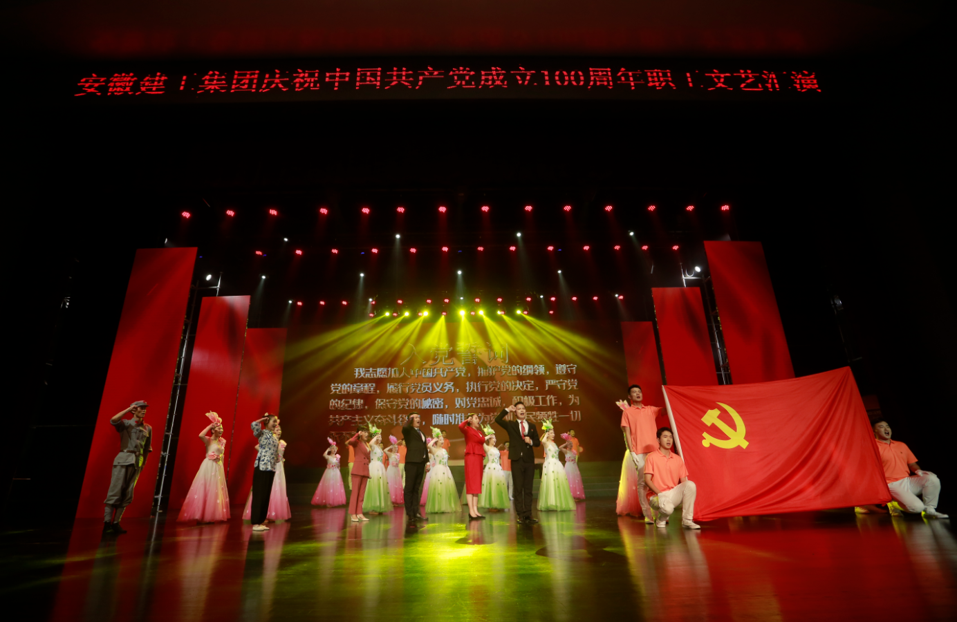 6月30日下午,安徽建工集團“頌歌獻給黨·奮進新征程”慶祝中國共產(chǎn)黨成立100周年職工文藝匯演在安徽省歌舞劇院舉辦,紅色旋律感人至深,嘹亮頌歌催人奮進。 整場演出主題鮮明、節(jié)奏明快、催人奮進,共分為“頌歌獻給黨”“禮贊建工人”和“奮進新征程”三個篇章,分別以父女對話、“十三五”成果視頻展播、具有代表性典型性集團優(yōu)秀黨員勞模講述先進故事進行開篇。來自20家基層單位和集團機關(guān)的700余名演職人員用心用情、載歌載舞,通過情景合唱、情景朗誦、歌舞、小品、音詩畫等形式,重溫中國共產(chǎn)黨走過的波瀾壯闊的百年輝煌歷程,謳歌建黨100周年來的豐功偉績,向黨的百年華誕獻禮。節(jié)目緊緊圍繞集團生產(chǎn)經(jīng)營,通過回顧整合重組整體上市、實施“投資+施工總承包”模式、推進裝配式建筑、統(tǒng)籌做好疫情防控和復(fù)工復(fù)產(chǎn)等一個個鮮活事例,集中展示集團“十三五”期間取得的輝煌成就,講述建工人不忘初心、牢記使命,苦干實干推動高質(zhì)量發(fā)展,邁向千億安徽建工新征程的奮斗故事。 文藝匯演精彩紛呈,不時贏得全場熱烈掌聲。“唱支山歌給黨聽,我把黨來比母親……”,安徽路橋氣勢恢宏的大合唱《在燦爛陽光下 唱支山歌給黨聽》拉開了匯演的序幕。技師學院舞蹈《紅色搖籃》、安徽交航音詩畫《紅船頌》、安徽建科舞蹈《映山紅》、安徽路港情景表演《長征路上》、安徽水利情景合唱《百年征程》展現(xiàn)了中國共產(chǎn)黨人百年接續(xù)奮斗,團結(jié)帶領(lǐng)人民開辟偉大道路、建立偉大功業(yè)、鑄就偉大精神。在安徽交航《紅船頌》誦讀人的領(lǐng)誓下,大家重溫了入黨誓詞,場面莊嚴肅穆而又鼓舞人心。集團機關(guān)和安建財務(wù)大鼓說唱《安徽建工展輝煌》、安徽安裝舞劇《穿越時空的對話》、海外事業(yè)部情景朗誦《建工人 我為你頌唱》、安徽二建情景舞蹈《眾志成城 建工力量》、路橋集團小品《婚禮現(xiàn)場》、安建投資情景劇《建工新時代 奮斗正當時》、安徽建機情景合唱《星辰大海》、安徽路橋情景舞蹈《旗幟》再現(xiàn)了建工人凝聚在黨的旗幟下,和企業(yè)同呼吸、共命運。歌舞類節(jié)目美輪美奐,安徽三建《我們迎來了好時代》、安建總承包《花開中國》、安建地產(chǎn)《潮起江淮》、安建建材《小夢想大夢想》、安徽一建《再唱山歌給黨聽》傾情演繹對黨的真摯祝福和愛黨愛國愛企的赤子情懷。集團中層代表、優(yōu)秀黨員、先進代表及安建建材和服務(wù)中心逾70名職工共唱《不忘初心》,表達了安徽建工全體黨員干部職工不忘初心、牢記使命,在“十四五”新征程中,聽黨話、感黨恩、跟黨走,用忠誠和實干在打造千億安徽建工、建設(shè)新階段現(xiàn)代化美好安徽宏偉征程中彰顯國企責任、扛起使命擔當。匯演在集團領(lǐng)導(dǎo)與演職人員、觀眾全體同唱《沒有共產(chǎn)黨就沒有新中國》歌聲中落下帷幕。 集團領(lǐng)導(dǎo),所屬單位主要負責人,集團機關(guān)部門主要負責人,2020年度集團優(yōu)秀共產(chǎn)黨員、勞動模范、先進生產(chǎn)工作者代表,部分職工代表及黨員干部職工等逾600名職工在現(xiàn)場觀看,2萬余名職工通過網(wǎng)絡(luò)直播收看,網(wǎng)上直播觀看達60余萬人次。 |