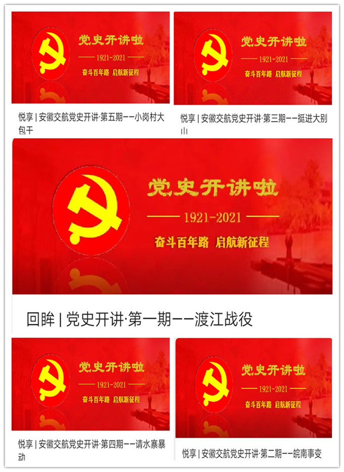 有了部署,定了方案,如何落實好黨史學習教育是關鍵之關鍵?安徽交航黨委給出了自己的答案。組織專題學習宣講。自今年3月以來,安徽交航黨委以上率下利用理論學習中心組、黨史學習讀書班、黨史戶外課堂等開展專題學習10余次,領導班子深入基層調研黨史學習教育開展情況10余次,邀請安徽省委常委黨建教授授課1次,所屬各黨支部通過“三會一課”、主題黨日及早例會等形式累計完成黨史學習教育60余次,公司領導班子先后赴合肥、亳州、全椒、滁州等各地基層開展黨史學習宣講10余次,并要求做到“三必查”(即黨建必查、安全必查、進度必查),確保黨史學習教育抓好抓實。開展“線上+線下”學習模式。線上通過學習強國APP、中國共產黨員網、共產黨員微信公眾號等網絡學習平臺開展學習。線下發放《論中國共產黨歷史》《中國共產黨簡史》等指定學習材料書籍700余冊,拍攝黨史類視頻7個,其中《黨的一百周年生日快樂》MV登上《學習強國》平臺,《我和我的支部》系列視頻廣受好評。突出新時代文明實踐點功能。著力在“四個資源”上下功夫,突出陣地平臺資源,依托新時代講習所等場所,以“互聯網+”模式為依托,在職工群眾聚集區及其他重點場所,集中進行宣講黨史并播放黨史故事專題片;利用服務隊伍資源,以“6+N”志愿服務隊為抓手,各個志愿服務隊主動進社區、進街道、進項目進行黨史宣講;整合文化活動資源,創新組織黨史學習教育類活動15次,其中黨史學習毅行活動受到廣泛關注;強化媒體宣傳資源,以公司“兩微一端”為載體,借助省級主流新聞媒體,線上線下互聯互通,做到讓黨史學習教育有影有聲。