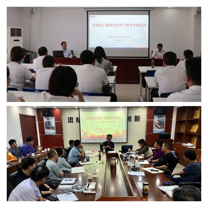 5月8日,公司黨委在阜陽潁東中醫院建設PPP項目舉辦安徽安裝公司黨委理論學習中心組(擴大)學習會暨中層管理人員培訓黨史學習教育專題黨課報告會。公司黨委書記、董事長胡六中作了題為《學黨史牢記初心 辦實事踐行使命》的黨課報告,公司中層管理人員及機關全體員工等共90余人參加;7月5日,公司黨委召開慶祝建黨100周年黨課報告暨表彰大會,公司黨委書記、董事長作了題為《風雨輝煌百年路 高歌奮進新征程》的黨課報告,公司中層管理人員及黨員干部職工等共90余人參加。