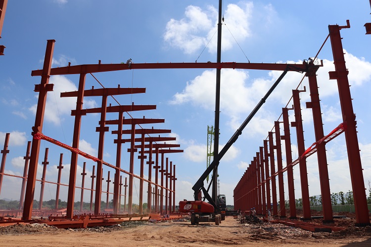 “加速度”推進(jìn)基地建設(shè)。在集團(tuán)、銅陵市委市政府的關(guān)心支持下,安建總承包和長(zhǎng)江建投創(chuàng)造條件大干快上,緊盯基地建設(shè)目標(biāo)不放松,克服解決回填土方量大等困難,倒排工期、優(yōu)化流程,積極整合設(shè)計(jì)、土建、鋼結(jié)構(gòu)、專業(yè)設(shè)備等資源,推進(jìn)設(shè)計(jì)-施工-設(shè)備安裝等協(xié)調(diào)互通和聯(lián)動(dòng)實(shí)施,帶動(dòng)集團(tuán)所屬相關(guān)單位產(chǎn)業(yè)鏈發(fā)展。全面開展“學(xué)黨史頌百年華誕、開新局強(qiáng)集團(tuán)本部”主題實(shí)踐和“大干100天”勞動(dòng)競(jìng)賽,PC生產(chǎn)工廠主鋼構(gòu)于8月底全部組裝完成,在趕工期搶進(jìn)度的同時(shí),嚴(yán)控技術(shù)標(biāo)準(zhǔn)和建設(shè)質(zhì)量,積極引進(jìn)新技術(shù)、新工藝和新設(shè)備,推進(jìn)數(shù)字化、智能化等在新基地各環(huán)節(jié)應(yīng)用。