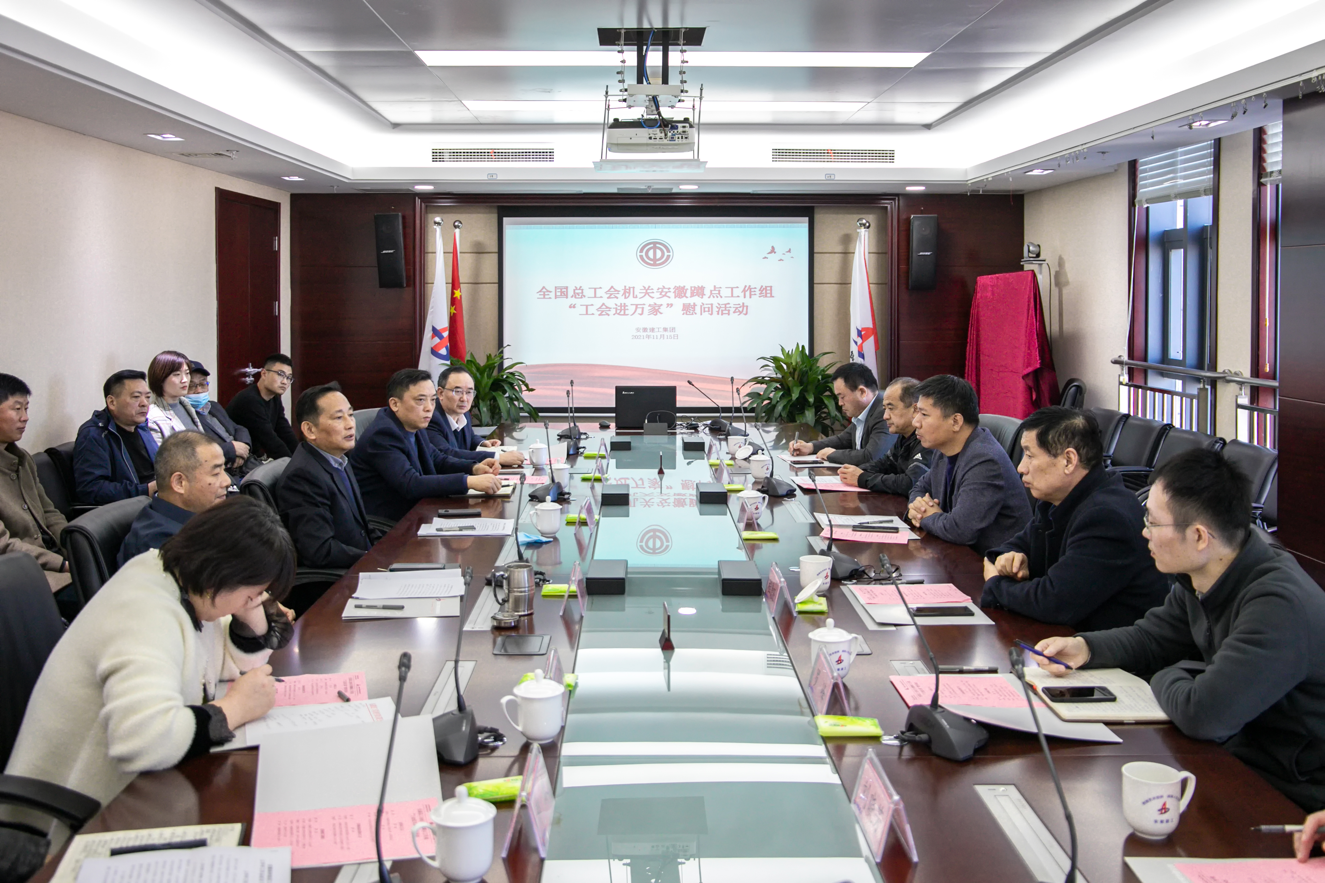 11月15日,全國總工會安徽蹲點工作組組長、中國海員建設工會副主席武建光等一行4人,到集團開展“工會進萬家”活動,慰問困難職工、勞模,調研集團工會工作開展情況。省建設建材工會主任程德旺參加調研,控股公司黨委副書記、工會主席牛曙東參加活動,股份公司黨委副書記、工會副主席徐文聯對集團近年來發展、“十四五”規劃以及工會工作進行了總體介紹。