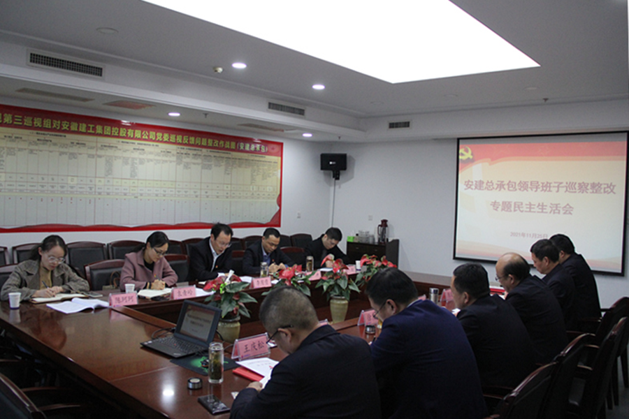 根據集團黨委巡察整改工作部署,11月25日下午,安建總承包黨委召開領導班子巡察整改專題民主生活會。建工股份黨委副書記、董事、總經理李有貴到會指導并講話,集團黨委巡察辦副主任袁青嶺、集團紀委紀檢監察室負責人劉翔、巡察辦陳珂珂和公司領導班子全體七名成員參會,公司黨委書記、總經理張沖主持會議。