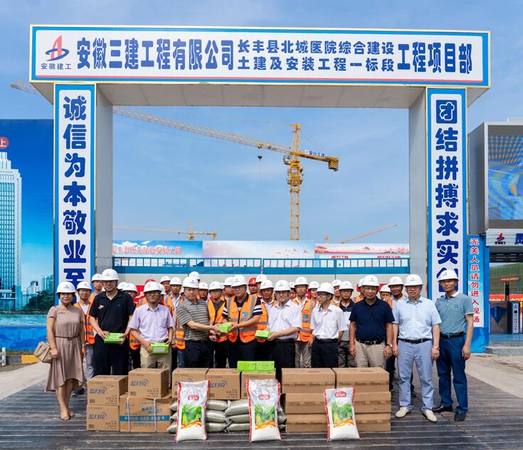 7月24日上午,建工控股總法律顧問申玉恩冒著高溫酷暑,來到安徽三建長豐縣北城醫(yī)院項目慰問奮戰(zhàn)在施工一線的干部職工,為他們送去了防暑降溫用品,并深入一線,實地察看了施工現(xiàn)場。控股法律事務(wù)部部長王勇、信訪保衛(wèi)部部長駱新農(nóng),三建公司黨委書記、董事長左登宏、紀委書記、工會主席李家保等陪同慰問。