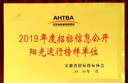 新年伊始,安徽省招標投標協會二屆五次理事會暨二屆六次常務理事會在合肥召開,會議公布了協會2019年度“新聞宣傳突出貢獻單位”、“ 招標信息公開陽光運行榜樣單位”、“ 招標投標行業學習型集體”等名單。 協會領導現場為獲得獎項的單位和個人授予了獎牌和榮譽證書。安徽建工集團股份有限公司榮獲“2019年度招標信息公開陽光運行榜樣單位”和“2019年度安徽省招標投標行業學習型集體”。