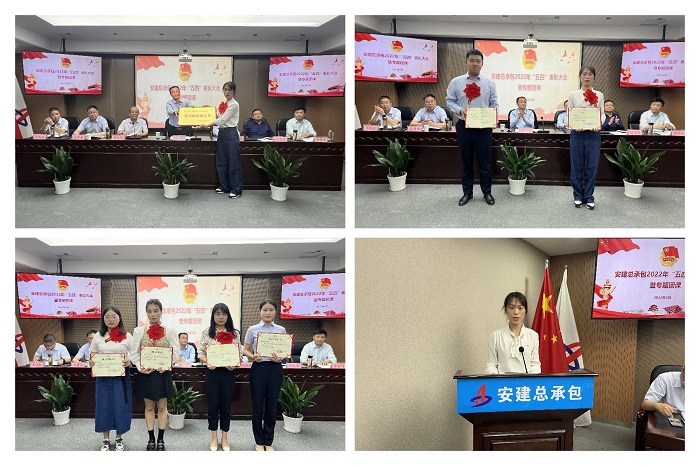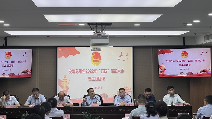 為隆重慶祝中國共產主義青年團成立100周年,在五一假期的5月4日青年節當天,安建總承包召開2022年“五四”表彰大會。黨委書記、總經理張沖作形勢任務教育主題團課,在肥領導王成民、徐友修、谷建偉、李登祥、王慶松為受表彰集體和個人頒獎并寄語青年,紀委書記、工會主席高立久主持。