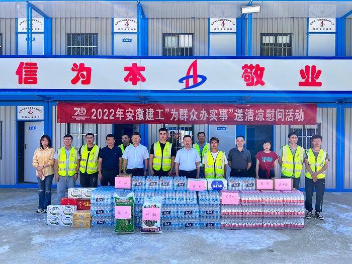 7月15日,建工股份黨委委員、副總經(jīng)理黃代赴安徽安裝岳西中學(xué)建設(shè)項(xiàng)目宣貫建工控股第一次黨代會(huì)精神暨開展“為群眾辦實(shí)事”送清涼慰問活動(dòng),安徽安裝公司黨委書記、董事長(zhǎng)胡六中參加慰問。