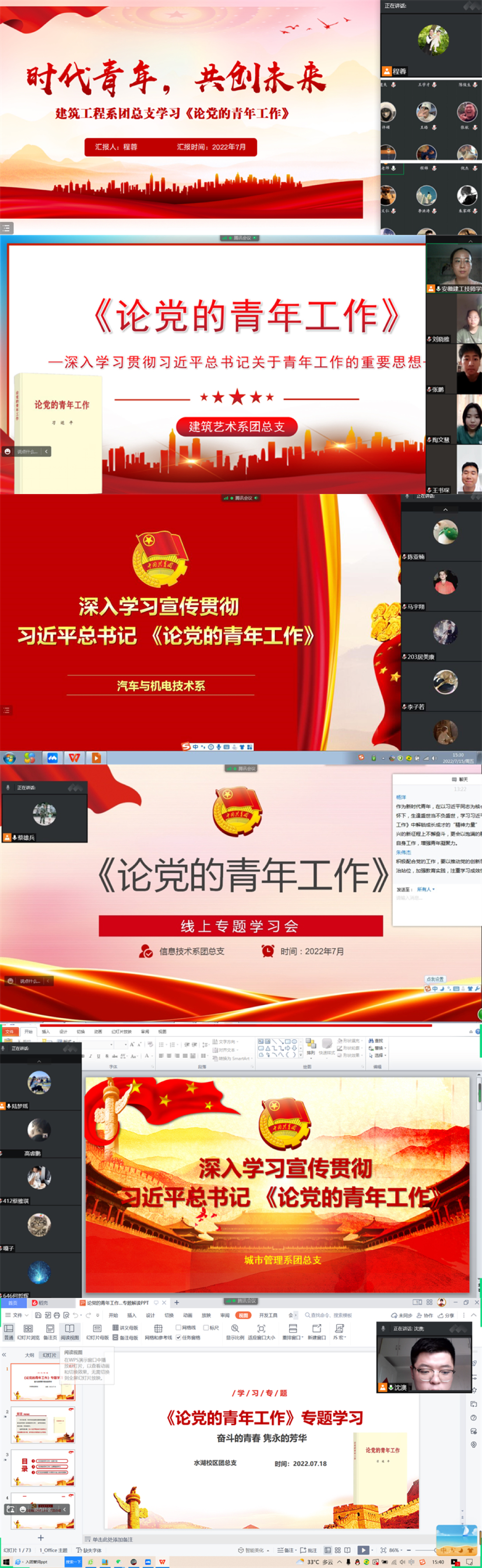 為深入學習宣傳貫徹習近平總書記《論黨的青年工作》精神,近日,安徽建工技師學院團委按照學院黨委和集團團委工作部署組織全體團員迅速行動,掀起學習宣貫熱潮。通過開展線上專題學習會組織全體團員開展學習討論,截至目前,共組織開展專題學習研討會6場,參與人數500余人次。