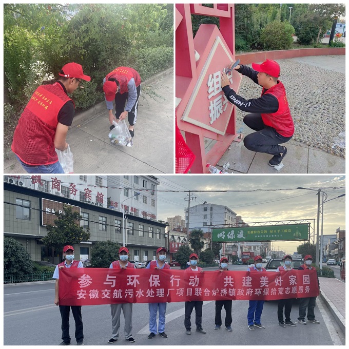 近日,安徽交航定遠縣爐橋鎮污水處理廠及管網工程EPC+O總承包及運維項目聯合爐橋鎮人民政府開展青年環保志愿服務活動,用實際行動踐行社會主義核心價值觀。