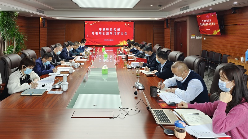 10月28日,安建投資黨委理論學(xué)習(xí)中心組專題學(xué)習(xí)黨的二十大精神。公司領(lǐng)導(dǎo)班子成員及機(jī)關(guān)部門負(fù)責(zé)人參會(huì),集團(tuán)黨委工作部副部長(zhǎng)聶猛及有關(guān)人員到會(huì)指導(dǎo)。